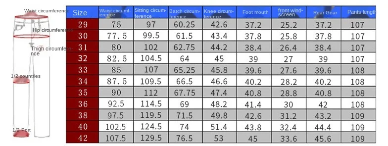 - Waist Size(in inches): 29 – 42
